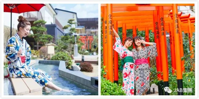 最讓人期待的,是這個溫泉樂園提供了免費的浴衣,你可以穿著日式風情浴衣在樂園內漫步、休憩。(最推薦的拍照打卡聖地哦)